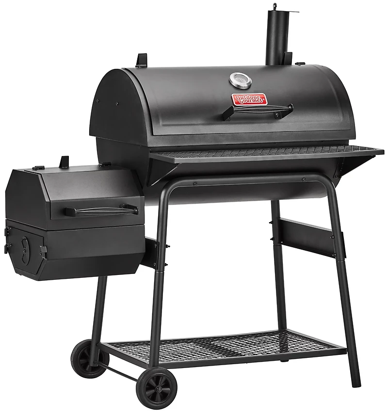 Be ready for your barbecues with the Outdoor Gourmet Sierra Charcoal Smoker. This charcoal smoker features expanded steel construction with a spacious cooking area for durability and easy use. The smoker has an off-set firebox with a removable ash pan and grate, as well as plastic wheels for easy movement.