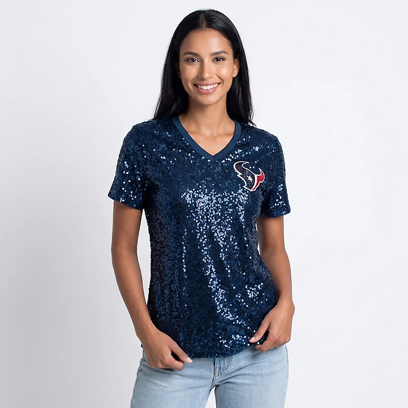 Let everyone know who your favorite player is with the Outerstuff Women's Houston Texans C.J. Stroud Name and Number Sequin Graphic T-shirt. The polyester material provides a comfortable feel, while the team graphics show off your Texans pride.