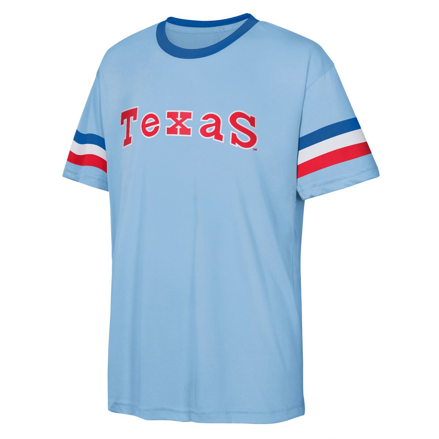 Show off your pride in your favorite player in the Outerstuff Youth Texas Rangers Semien Sublimated N&N T-shirt featuring polyester interlock knit and a sharp sublimation print. The crew neck silhouette with self fabric collar delivers added comfort.