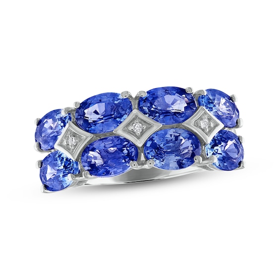 Oval-Cut Natural Blue Sapphire & Diamond Ring 1/10 ct tw 14K White Gold