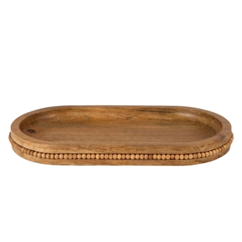 Oval Natural Wood Beaded Serving Platter