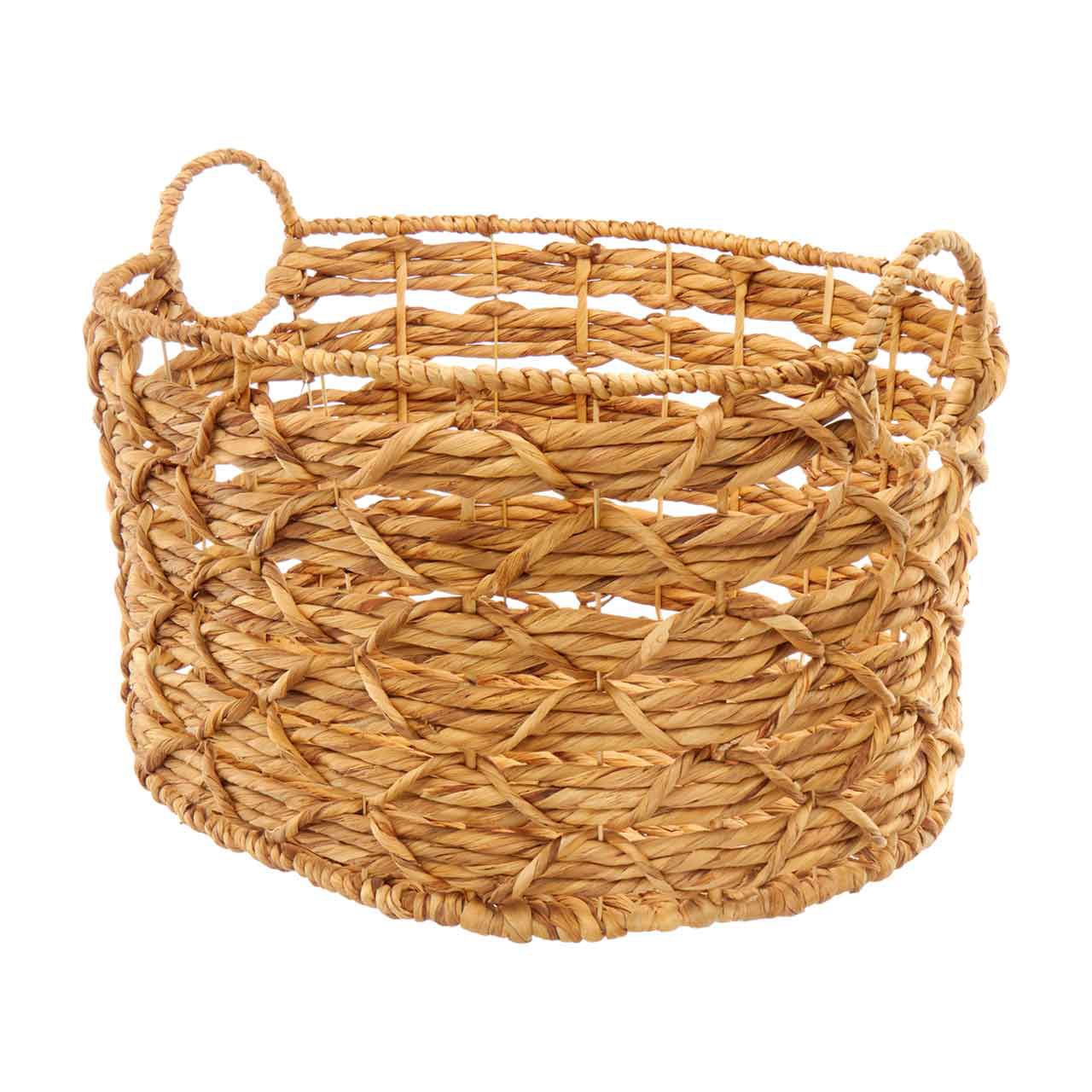 Oval Water Hyacinth Lattice Wrapped Basket with Handles, Natural, Large