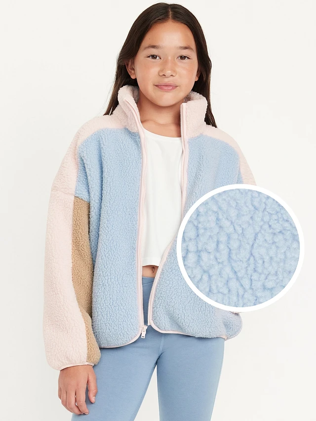 Oversized Color-Block Sherpa Zip Jacket for Girls