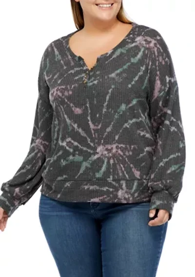 Plus Tie Dye Oversized Waffle Henley Top