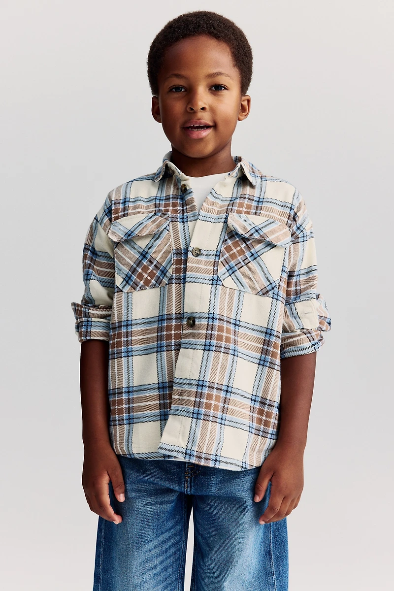 Oversized shirt in soft cotton twill. Collar, buttons at front, a yoke at back, and chest pockets with flap. Dropped shoulders and long sleeves with button at cuffs.