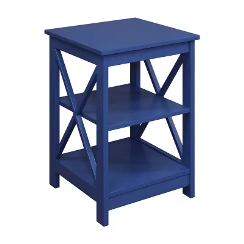 Welcome the oxford end table with shelves from convenience concepts into your home. This chic transitional side table is just what you were looking for to renovate your space. Available in multiple finishes, the oxford end table with shelves will complement any existing living room while offering a fresh new look. The beautiful bold x frame panel sides make a statement, while creating an open concept feel that is modern and new. Featuring a spacious table top, middle and bottom shelf, this accent table provides plenty of space for display and storage, from your favorite books to a vase filled with your favorite flowers. Made of mdf and non-lead based paint, the oxford end table with shelves is built to last and safe for any room. Bring the oxford end table with shelves home today and look for other coordinating pieces from the oxford collection from convenience concepts, each sold separately.