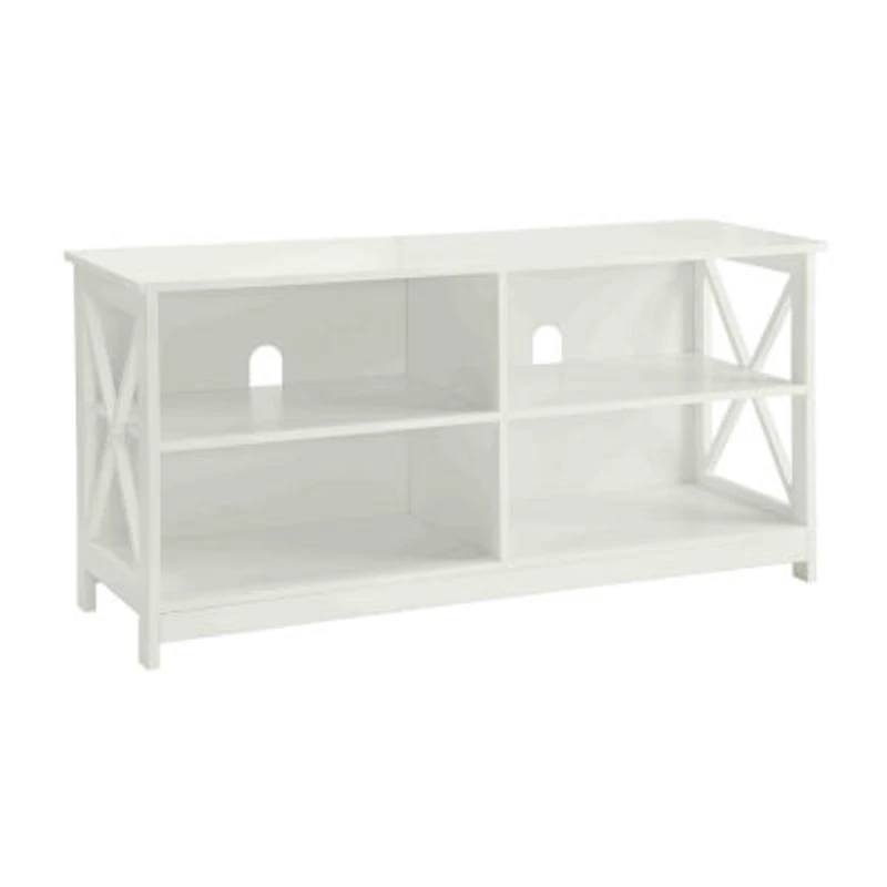 Optimize your display and storage space with the Oxford tv stand by convenience concepts. With an open concept design and cable management holes; you will be able to keep all your media and entertainment accessories within reach. Boasting a contemporary style; this furniture piece is ready to refresh your decor. Its unique X frame side design is the finishing touch to modernize any room in your home. Crafted from MDF and finished with a non lead based paint; this open storage 5 shelf unit was built for longevity and is safe to be anywhere in your living space. This tv stand is available in multiple finishes to complement any home decor. Look for matching pieces from the Oxford collection by convenience concepts. Each sold separately.