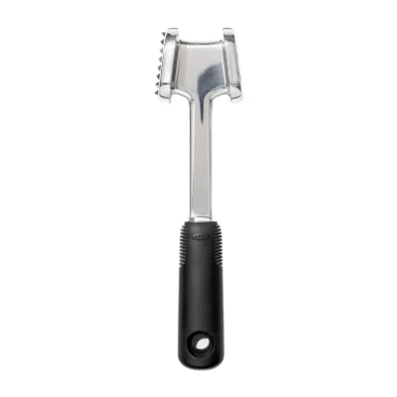 This OXO Good Grips meat tenderizer is an essential cooking tool for your collection. Made from durable aluminum, this dishwasher safe design features a soft comfortable handle with grips and a spiky head to tenderize meat.