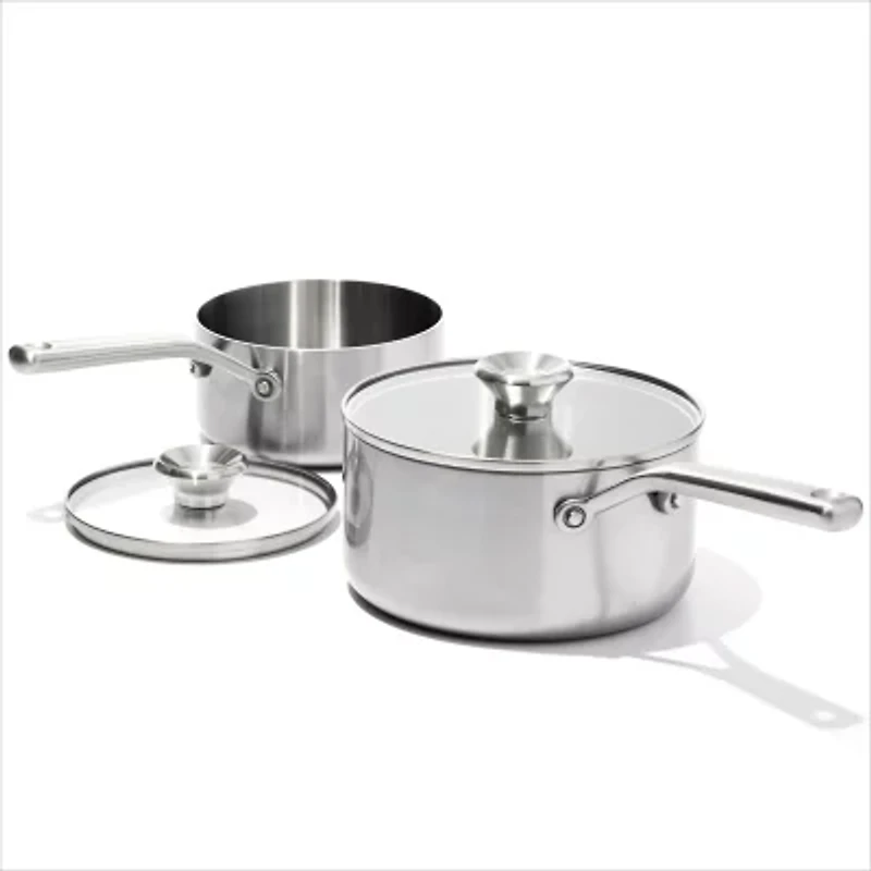 OXO Mira 3-Ply Stainless Steel 4-pc. Sauce Pan Set