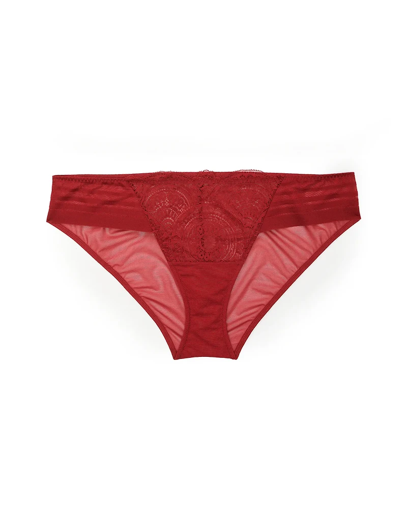 The Ozette Bikini Dark Red lace bikini is a romantic take on a timeless silhouette. Effortlessly charming, this piece is A Bikini Panty for a flirtatious touch, exuding confidence and allure. (Available in sizes M-4X.)