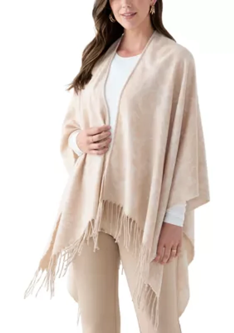Decked out in a classic paisley print, this topper from Anne Klein is accented with tasseled trim. Imported Product Specifications Wrap body: 51" x 24" Material & Care Viscose Hand wash