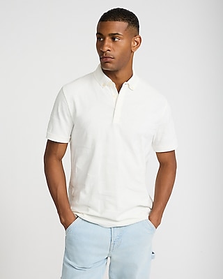 A short sleeve polo complete with a button-down collar, a covered button placket, and a palm print.