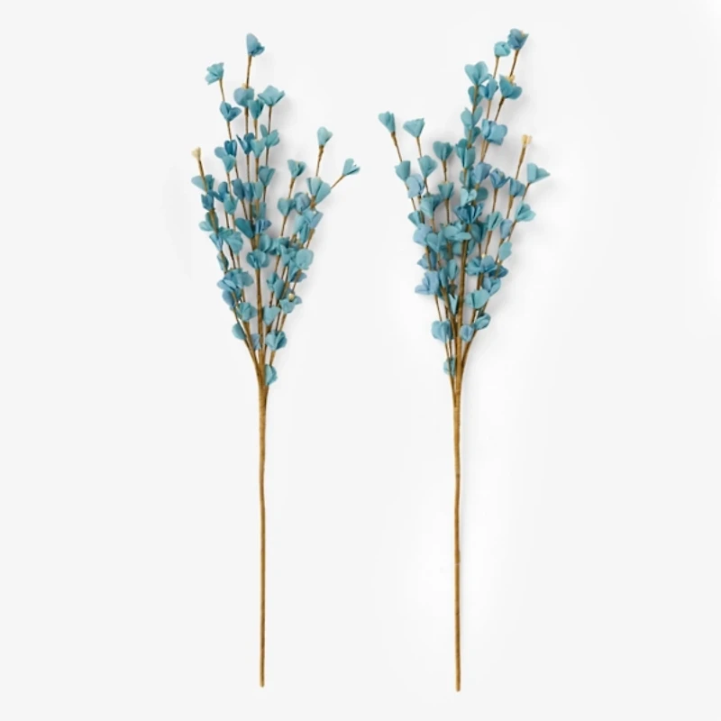 Add a burst of delicate floral beauty to your home with the set of Blue Paper Flower Sprays! These lovely stems will look gorgeous mixed into a floral arrangement or styled separately in bud vases. Set includes two (2) sprays Each spray measures 5L x 2W x 27H in. Crafted of 70% paper and 30% wire Paper flower designs Hues of blue and brown For decorative use only Care: Dust with a soft, dry cloth. Contact your local Kirkland's store for availability. Quantities and selection may vary by location.