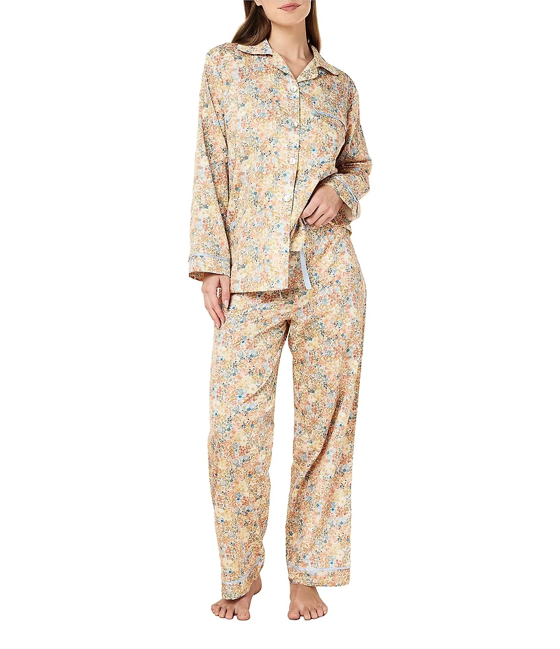 Papinelle Carly Floral Print Long Sleeve Notch Collar Woven Sateen Long Pajama Set