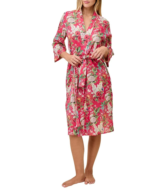 Papinelle Lightweight Cotton Voile Long Sleeve Shawl Collar Floral Print Maxi Robe