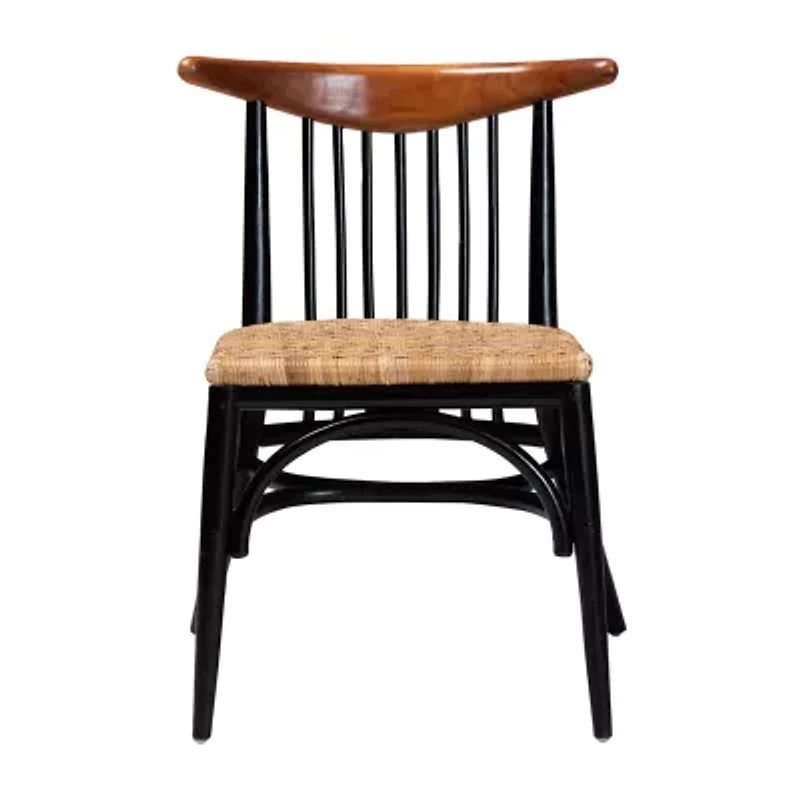 Bring the distinguished craftsmanship of mid-century design to your space with the stunning Parthenia dining chair. Made in Indonesia, this classic piece consists of a solid mahogany wood frame fitted with a woven rattan seat. Its tapered backrest gently curves for a cozy embrace while the spindle design lends a light, airy display. The Parthenia will arrive fully assembled and utilizes angled legs for excellent stability and support. A visually stunning yet homely addition, the Parthenia dining chair creates an unforgettable dining arrangement. Due to the nature of the natural materials used in this product, it may have variations in areas such as, but not limited to, color, pattern, grain and texture. The hair-like strands of rattan/rattan-fiber are common due to nature of the material. Overall dimensions: 21.70" w x 20.50" d x 30.30" h; seating: 17.70" w x 17.30" d x 18.10" h; backrest: 22.80" h; legs: 9.40" h;
