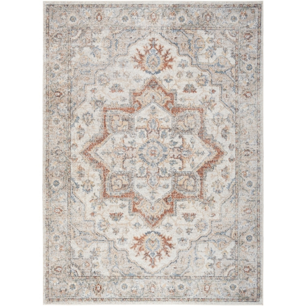 Embellish your floors with the soft color and texture of this Pastel Medallion Washable Area Rug! Simply pop it in the washing machine to keep your space looking brand new! Rug measures 5 ft. 3 in. in length x 7 ft. in height Crafted of polyester Features a medallion design Hues of gray, pink, white, orange, and blue Rug pad not included Care: Machine wash cold. Do not bleach. Line dry. Vacuum regularly with no beater bar. Not safe for outdoor use. This item is available at Kirklands.com only, not available in stores. Please note: this item cannot be shipped to APO/FPO addresses.