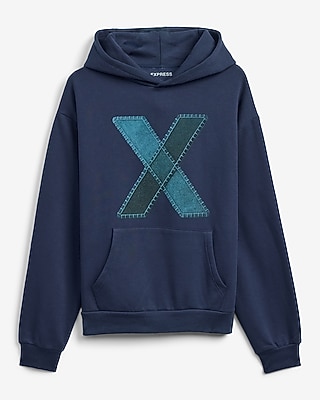 Bold and cozy meet in this fleece hoodie. Free from adjustable drawstrings, this comfortable navy hoodie has a classic hand pocket and trendy large patch inspired X-logo. Pair with jeans and under your favorite coat for a causal modern style.