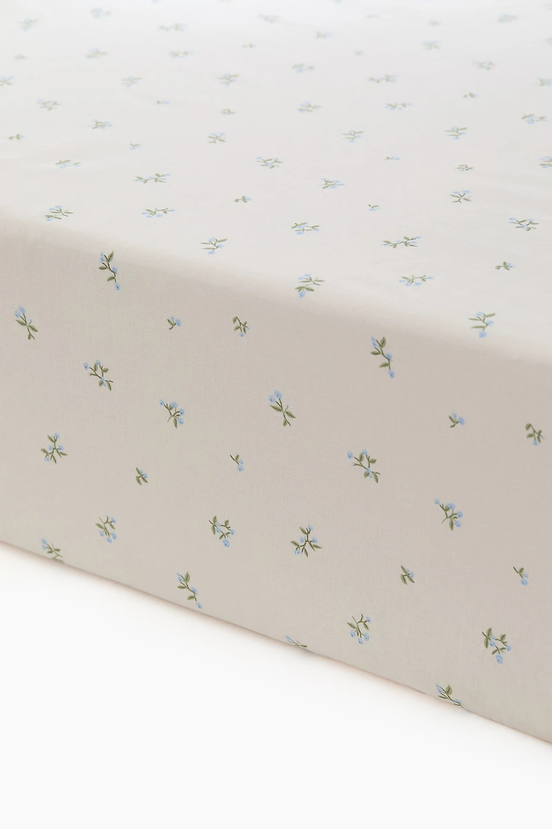 Fitted sheet in woven cotton fabric with a pattern. Easily matched with other colors and patterns for a personalized look. Fits mattresses up to 9 in. thick.