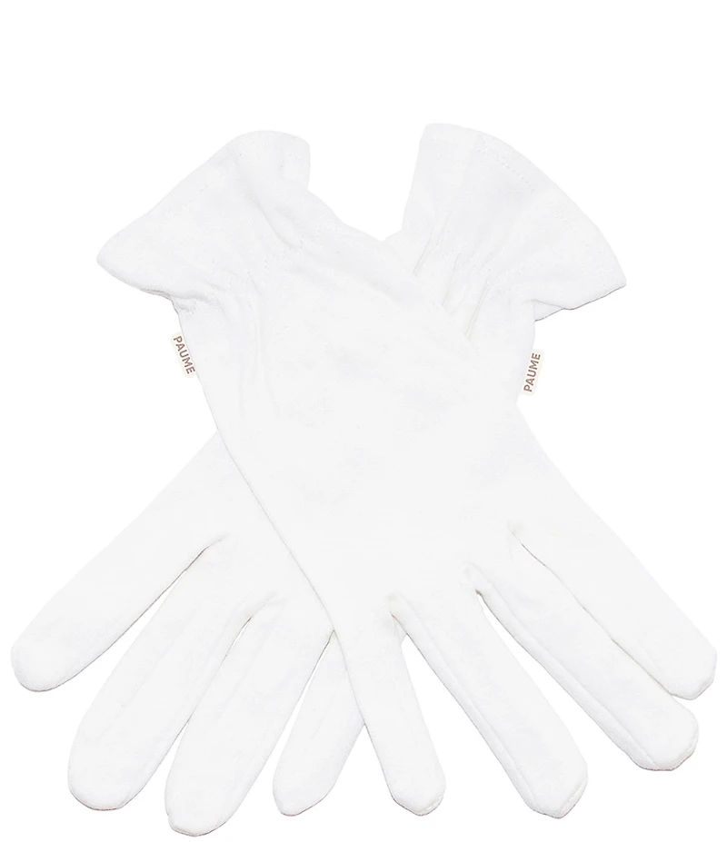 This tool was designed for those who: experience dry chapped hands need extra concentrated moisture for their hands overnight These 100% organic cotton overnight gloves concentrate the moisturizing benefits of our Probiotic Hand Balm when worn overnight, revealing soft, hydrated hands, and youthful hands. Treatment Instructions: 1. Apply a generous amount of Probiotic Hand Balm to hands, fingers, and fingernails. 2. Apply gloves and wear them while you sleep. 3. Remove gloves in the morning and reveal soft, hydrated, restored hands. In partnership with Repurpose Global, one plastic unit will be pulled out of landfills, waterways, and marine environments for every unit sold to be recycled and repurposed. Our signature blend of five essential oils provides notes of crisp lemon, energizing orange, herbaceous rosemary, comforting lavender, and aromatic cedar. The PAUME Skincare routine: Step 1: Sanitize throughout the day for waterless germ-killing and hydration. Step 2: Cleanse, scrub, exfoliate, and remove stubborn dirt in the fingers, nails, and cuticles. Step 3: Hydrate and restore skin's natural moisture balance, smooth fine lines, and improve skin elasticity and tone. Step 4: Strengthen nails, hydrate cuticles, and remove bacteria. Step 5: Enhance your routine with overnight gloves following steps 3 and 4. The Result: Clean, hydrated, youthful hands and strong healthy nails. Our Unique Formula Grape Seed Oil improves skin’s moisture, softness, and elasticity. It contains high levels of vitamin E, which has high antioxidant properties and protects the skin against free radicals. Lactobacillus Ferment Lysate, a lab-created, non-living probiotic ingredient keeps the microbiome in balance while increasing skin tone and elasticity, minimizing wrinkles, and providing deep hydration. Also effective in soothing the skin and reducing redness and irritation. Hydresia G2A sustainably produced emollient derived from safflower oil, that delivers skin nourishing vitamins and enhanced long-lasting hydration. It is an all-natural alternative to chemical emulsifiers that are skin-irritating and non-biodegradable.