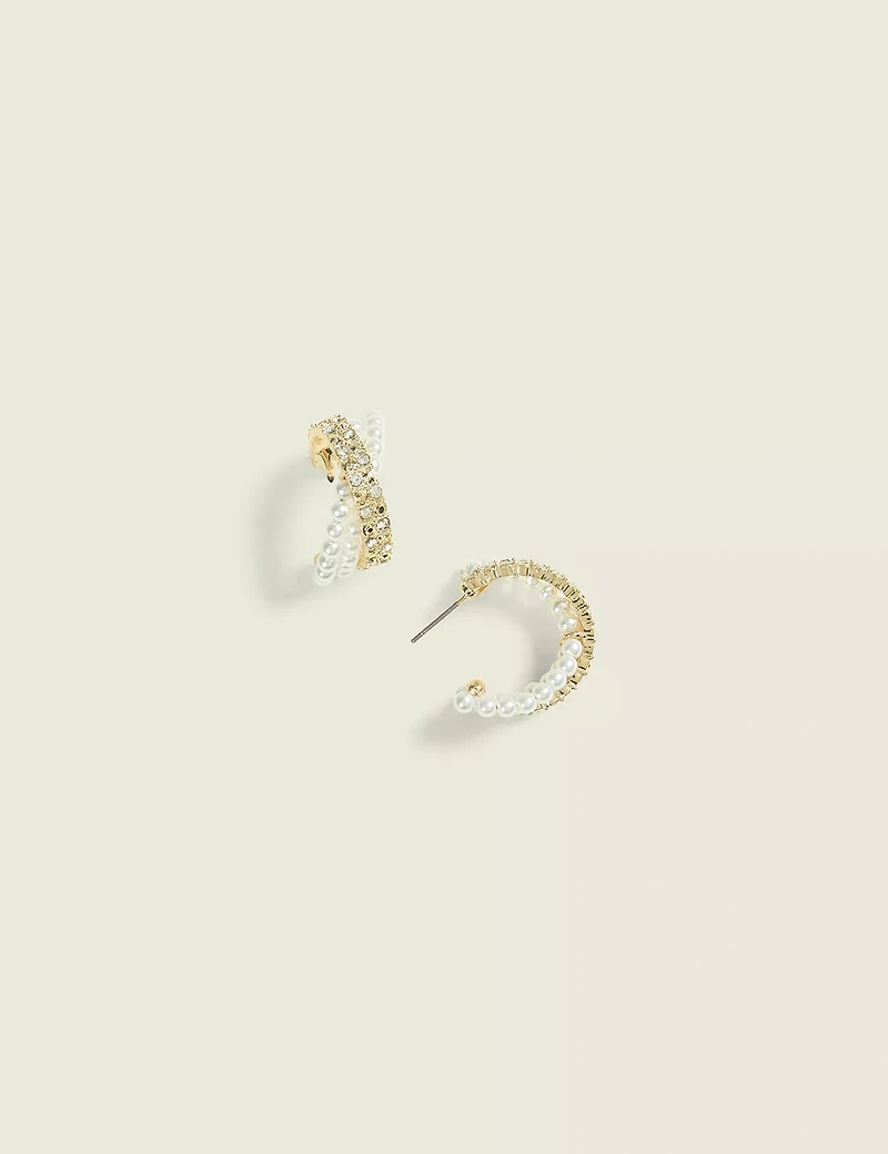 Pave & Pearl Crossover Hoop Earrings