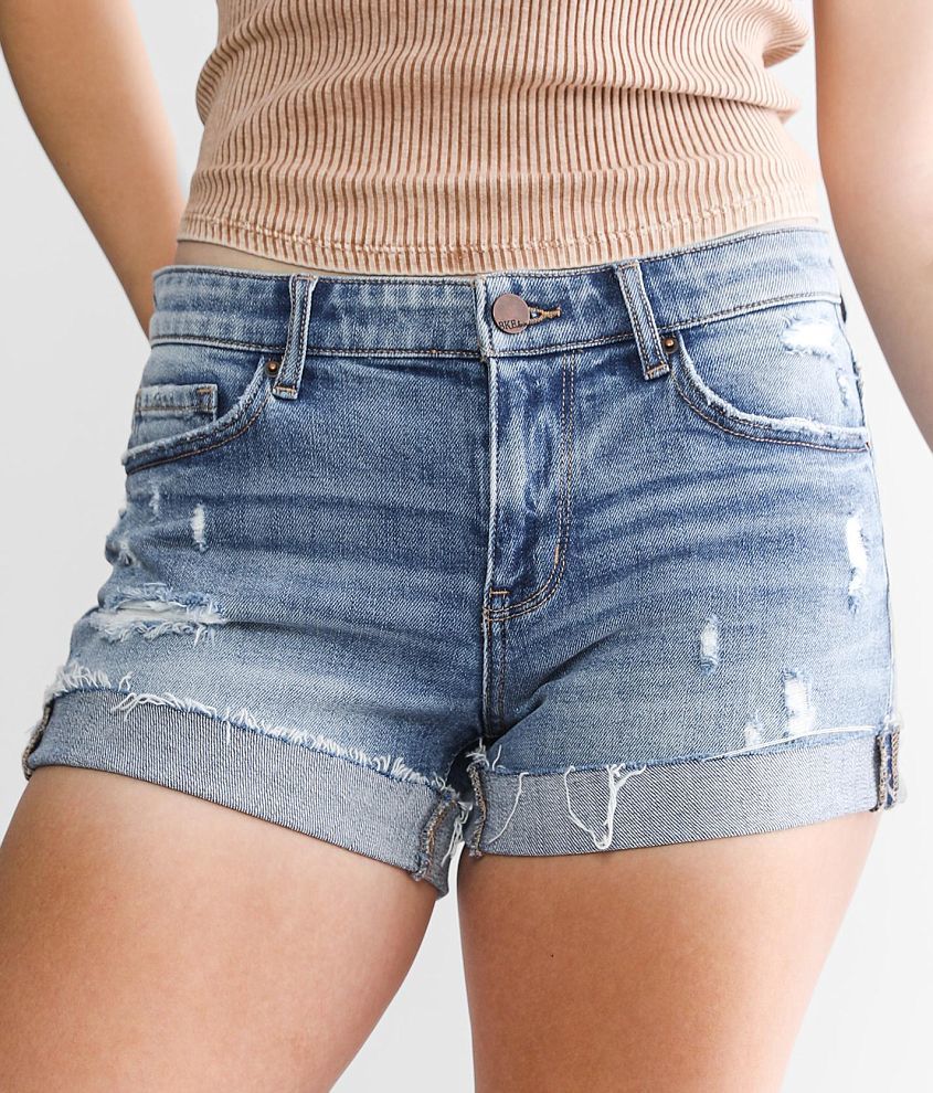 Mid-rise Slightly eased through the hip and thigh 2 1/2" cuffed shortie short, 4 1/2" uncuffed Destruction and frayed hem details Model Info: Height: 5'9 1/2" | Bust: 34 1/2" | Waist: 26 1/2" | Hip: 36 1/2" | Wearing Size: 26