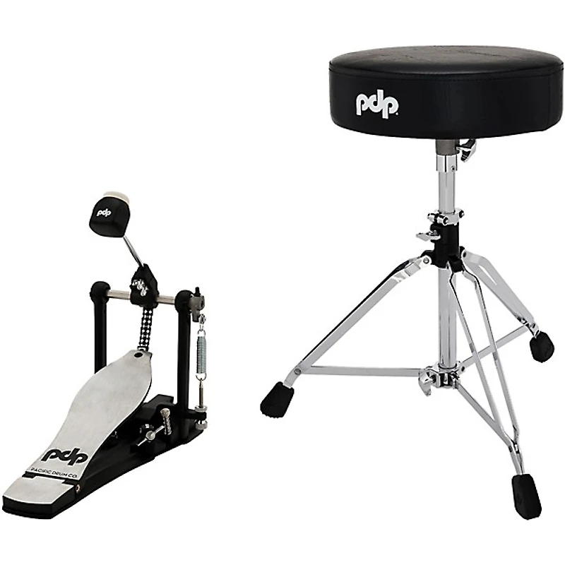 PDP by DW 800 Series 2-Piece Hardware Pack – Single Pedal features a double-chain single pedal, composite memory locks, anti-slip feet and 13" round-top throne.