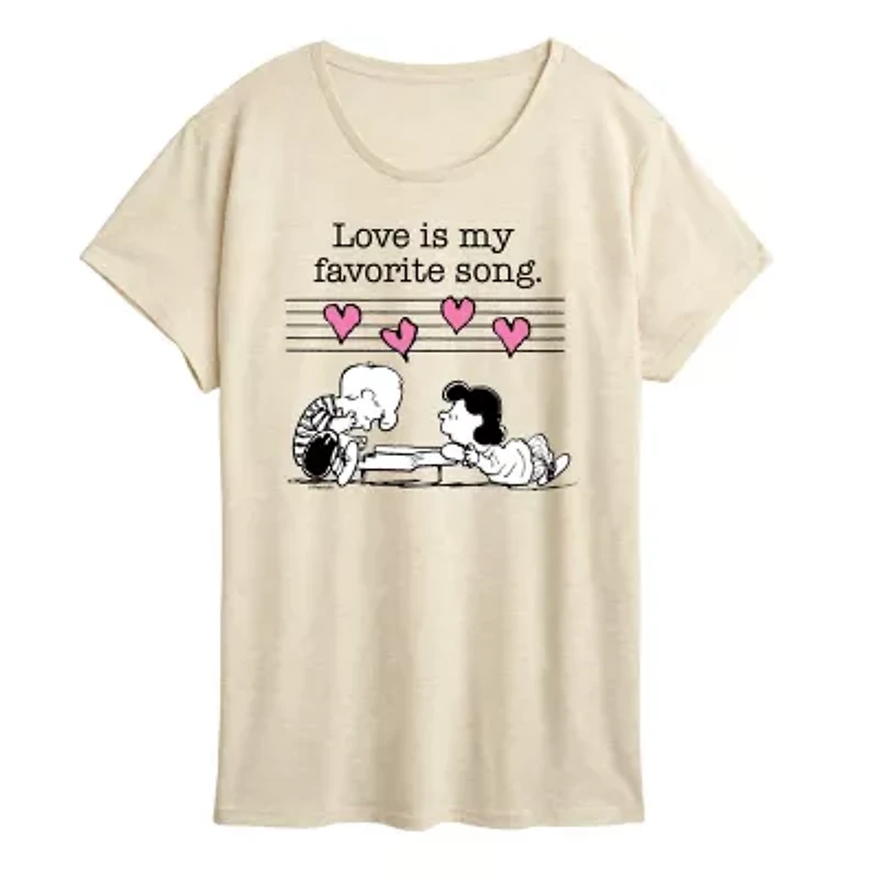 Peanuts Lucy And Schroeder Valentines Womens Crew Neck Short Sleeve Classic Fit Graphic T-Shirt