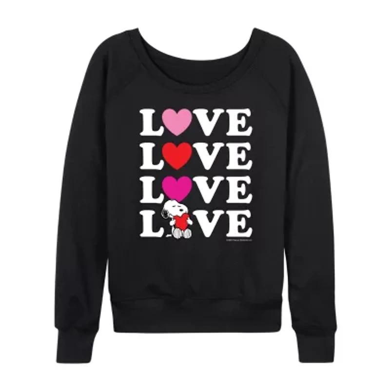 Peanuts Snoopy Love Stacked Womens Boat Neck Long Sleeve Classic Fit Graphic T-Shirt