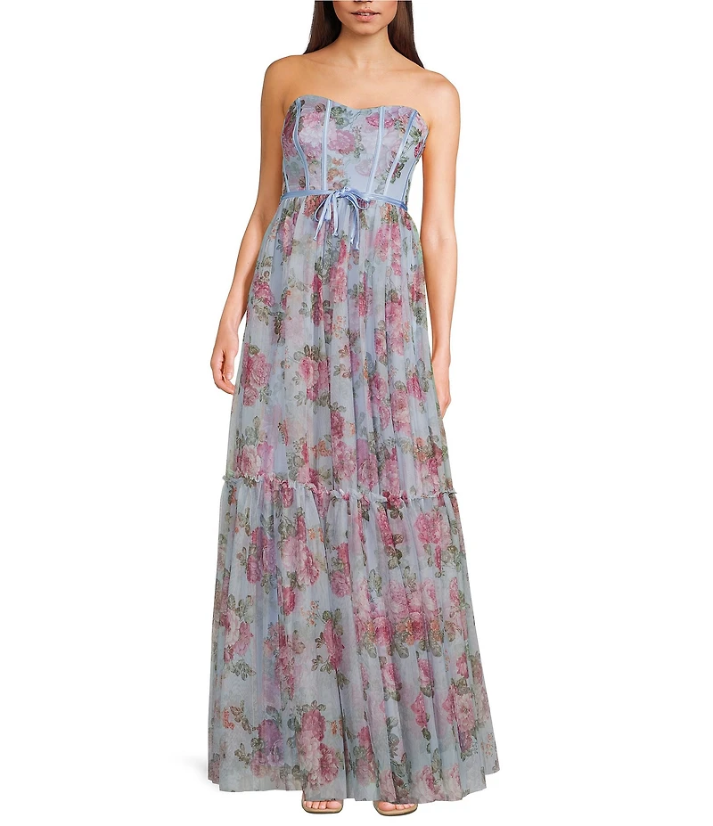 Pear Culture Floral Print Sweetheart Neck Strapless Corset Dress in Chattanooga, TN