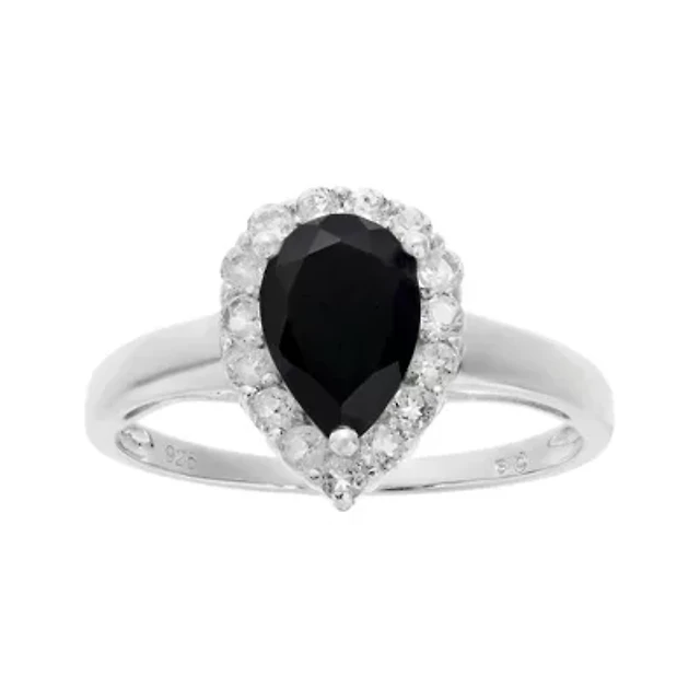 Womens Genuine Black Onyx Sterling Silver Pear Halo Cocktail Ring