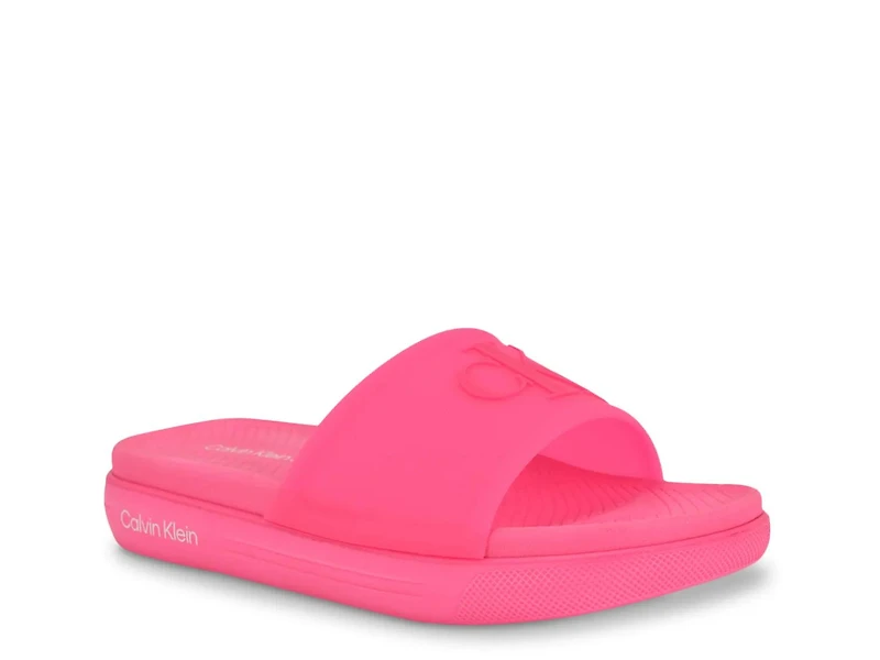 Add to your summery fits with the Calvin Klein Peari slide. This sandal sports a classic design that's sure to pair well with your casual looks, while the cushy footbed provides comfort underfoot.