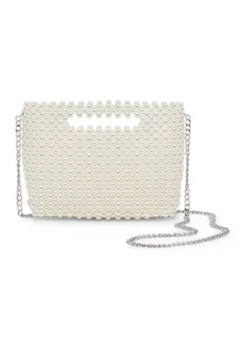 This stunning Dolce Vita pearl bead bag features elegant top handles and a detachable strap for versatile styling. 1" handle; 22" drop removable crossbody Faux pearl exterior Imported Product Specifications 7.5" L x 2.5" D x 6.5" H Material & Care Plastic, PVC trim Clean with a soft bristle brush or cloth and warm soapy water