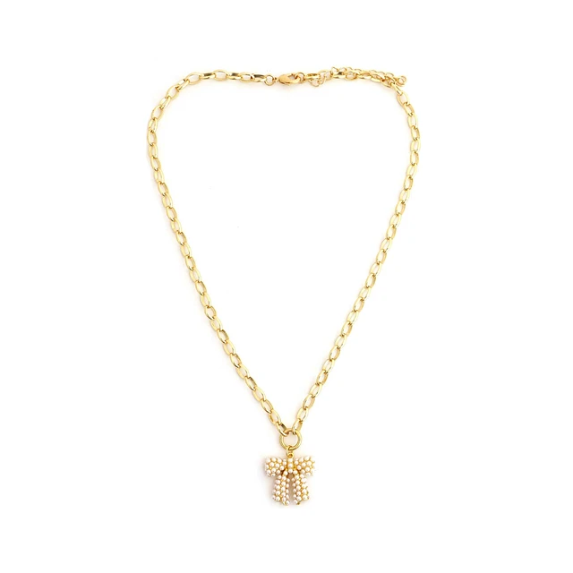 Pearl Bow Gold Necklace