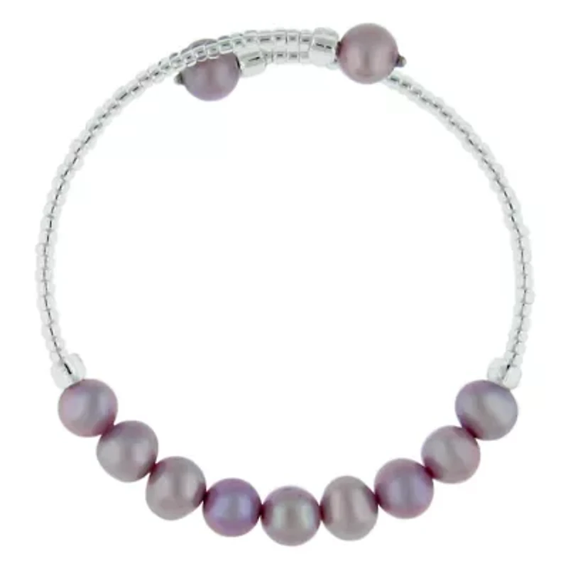 Add a soft pop of color to your jewelry collection with this elegant silver bangle bracelet featuring 6–7mm potato-shaped dyed lavender freshwater pearls accented by shimmering glass beads. The gentle lavender hues create a soothing, feminine look, while the polished silver setting adds a refined touch. Designed in a comfortable 7-inch length, this bracelet is perfect for everyday wear or layering with other favorites, making it a versatile piece that transitions effortlessly from casual to dressy styles. 11 Polished finish China Imported Product Specifications 7-in x 6mm Material & Care Metal, Sterling silver Clean with a soft cloth.