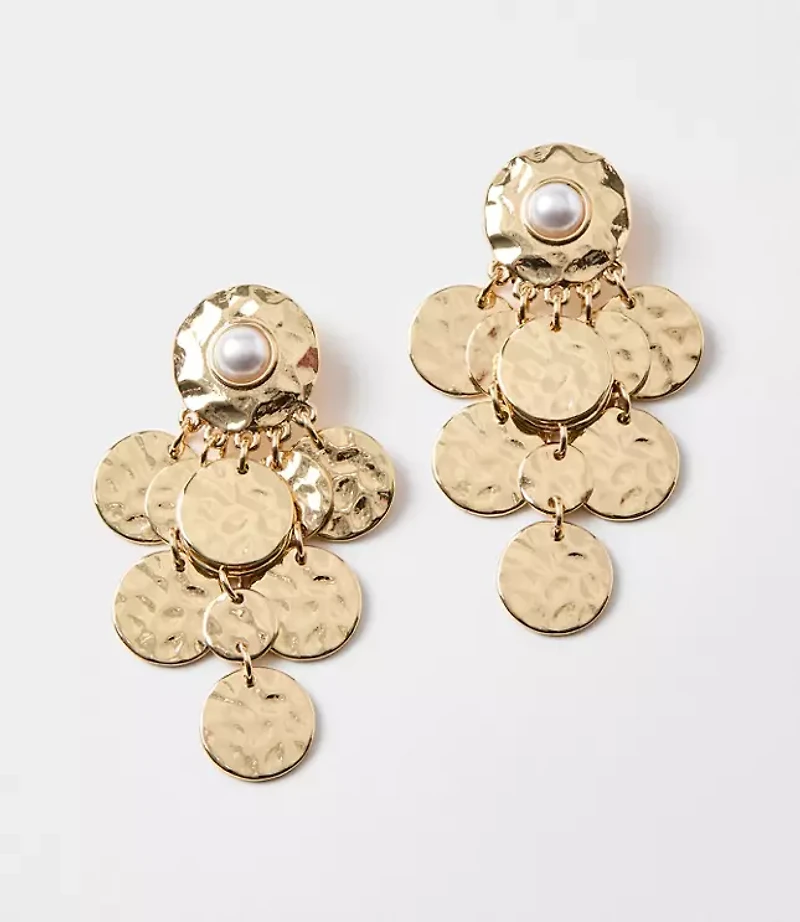 Dropped from a glossy pearlized centered stud, a hammered texture adds an artful finish to this statement making pair. Post back 2 1 /"drop., Imported: Loft Pearlized Hammered Drop Earrings Goldtone Women's by Loft Size Regular - One Size Goldtone Women's Earrings, Jewelry