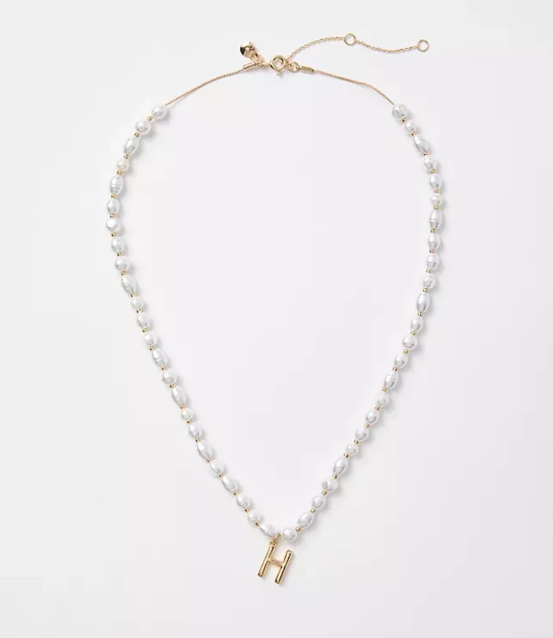 Now, it's personal - add a glam kind of signature style to your repertoire with this perennially chic pendant necklace. Spring ring closure. 17"long with 2"extender., Imported: Loft Pearlized Initial Necklace Gold Letter H Women's by Loft Size Regular - One Size Gold Letter H Women's Necklaces, Jewelry