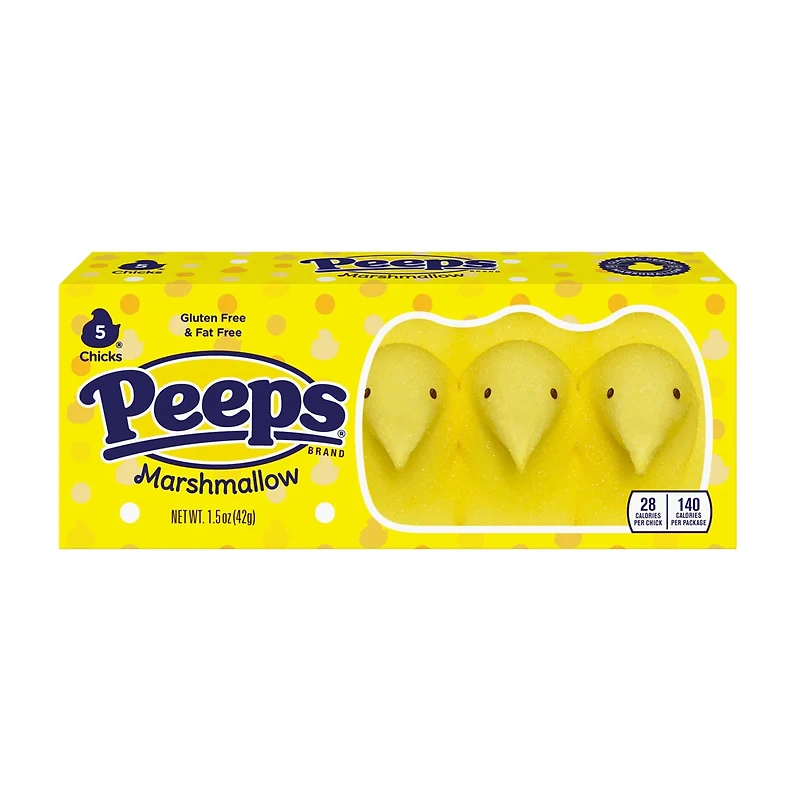 This candy features five soft and fluffy yellow marshmallow treats in a convenient gift box.