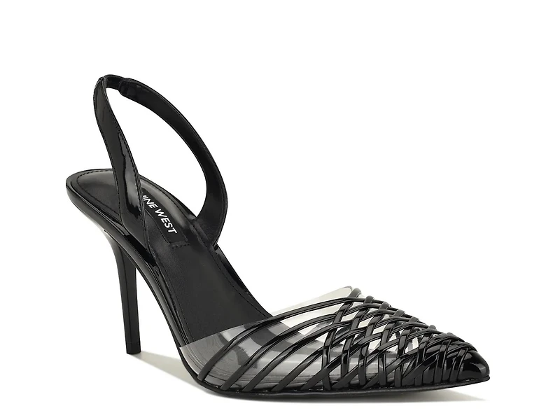 Step out with confidence in the Pemma pump from Nine West, a sleek dress pump designed to make a statement from day to night. This pointed-toe silhouette features a striking stiletto heel and a slingback strap that adds a modern edge, making it the perfect choice to seamlessly transition your look from the office to after-hours.