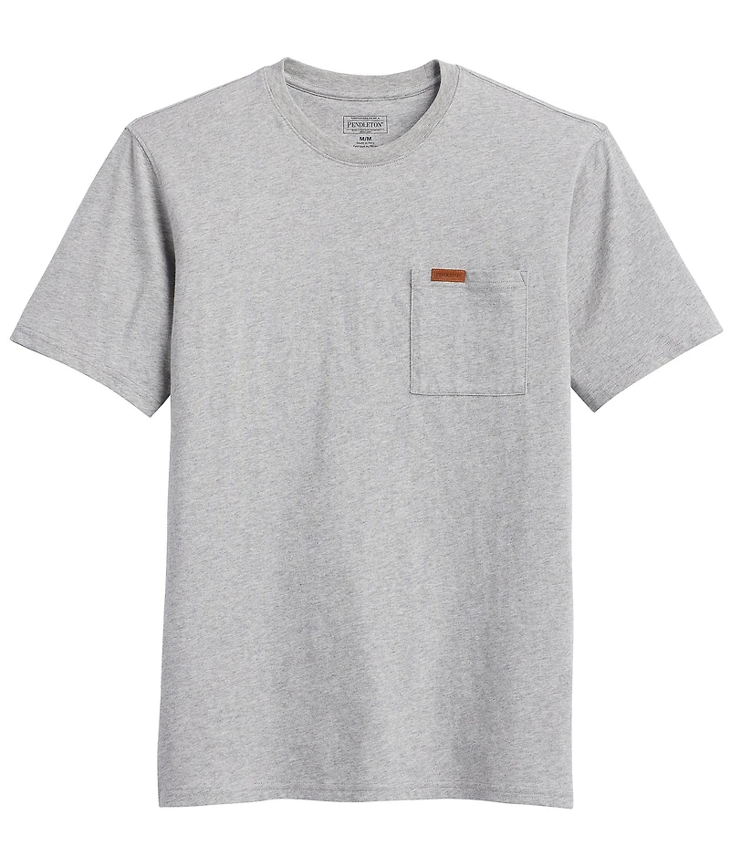 From Pendleton, this t-shirt features: Ribbed crew neckline Short sleeves Small, leather logo patch on the left side chest pocket Double-needle stitching Pullover construction Cotton Machine wash/tumble dry Imported.