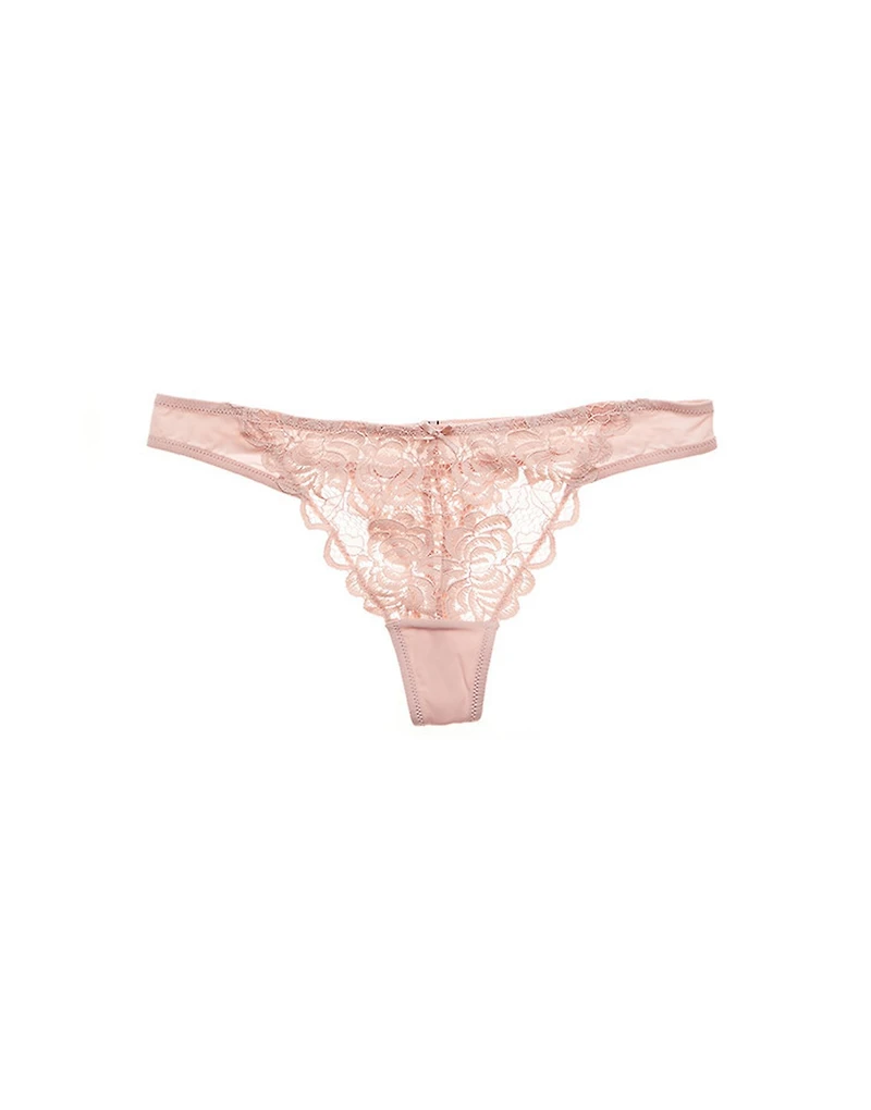 The Penny Thong Medium Beige lace thong is a romantic and alluring essential, designed for comfort and elegance. - Style: Thong Panty. (Available in sizes XS-XL.)