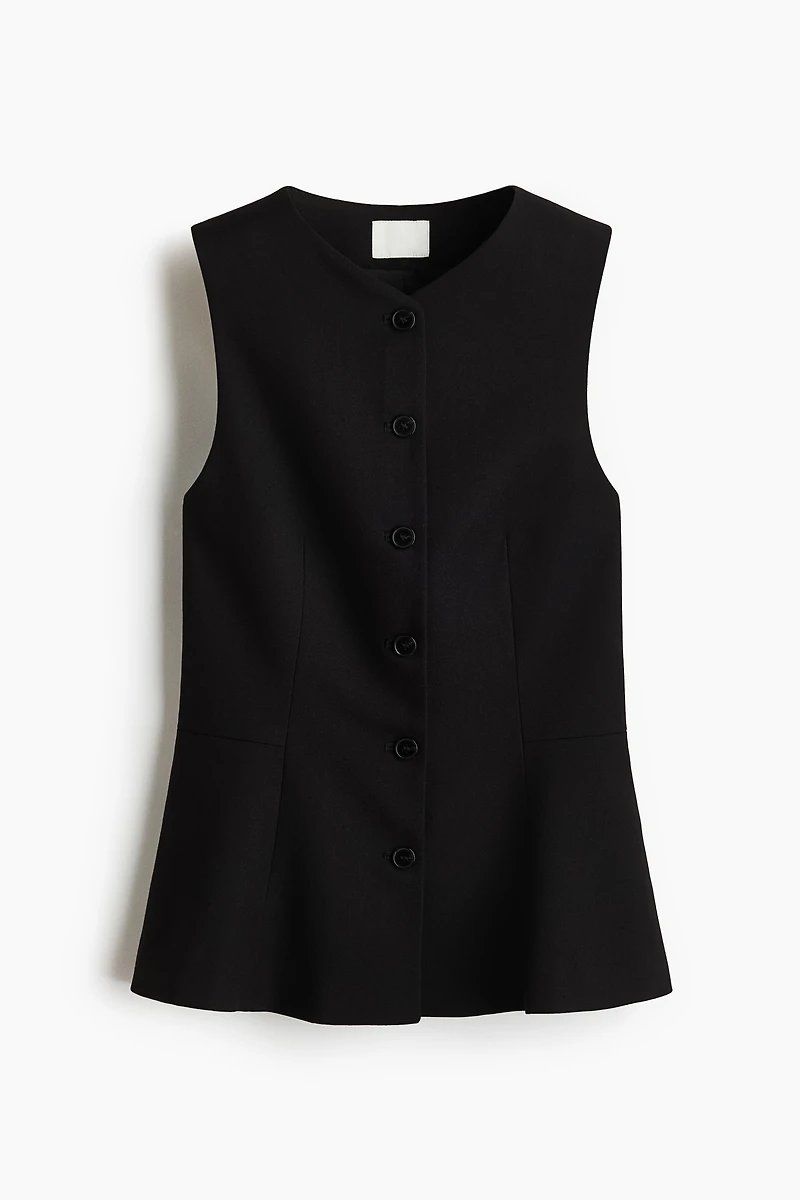 V-neck Vest in woven fabric with buttons at front. Shaping seams at waist and a flared peplum for a tapered silhouette. Lined.