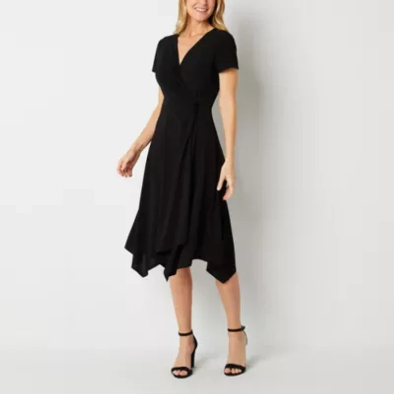 Perceptions Womens Short Sleeve Midi Fit + Flare Dress
