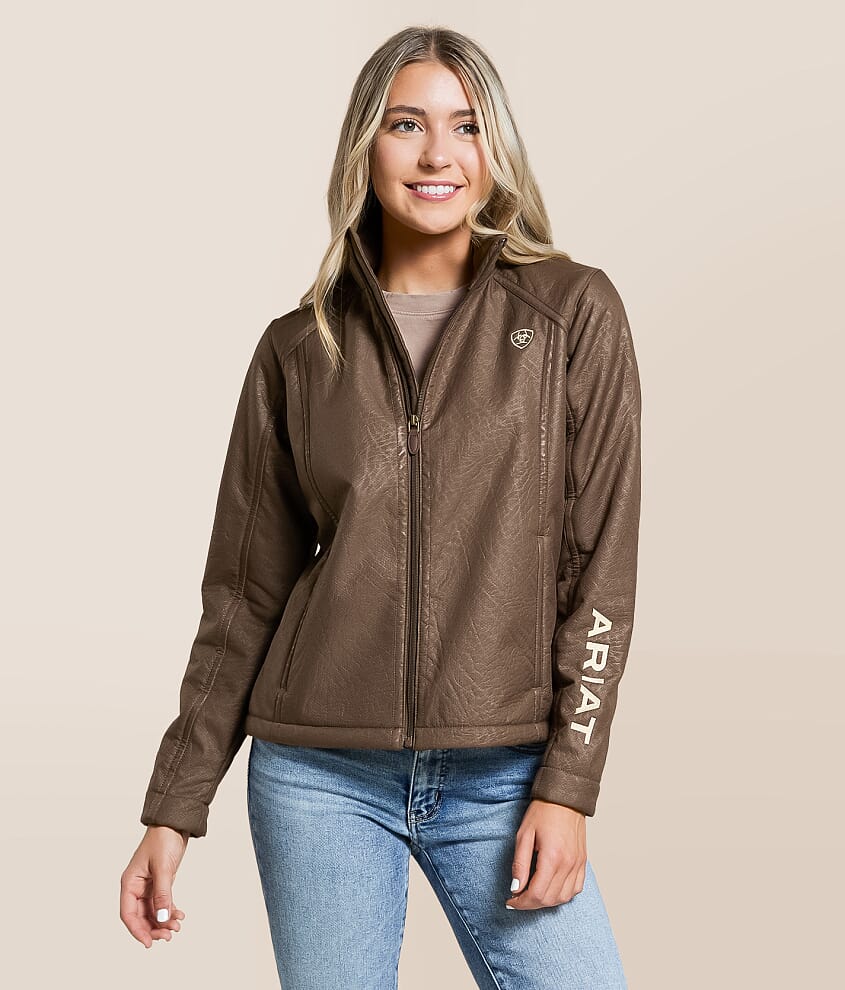 Faux leather zip down sherpa lined jacket Wind and water resistant Sleeve hit