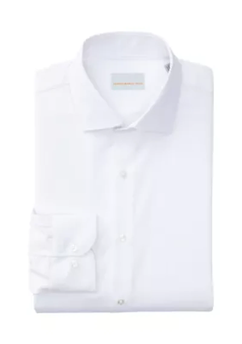 Lightweight and stretchy for all-day comfort, this crisp collared shirt from Perry Ellis® has a place in every man's closet. Button closure Round, Spread collar Long sleeve, Button cuff sleeves Regular fit Solid Imported Material & Care Polyester/Spandex Machine washable