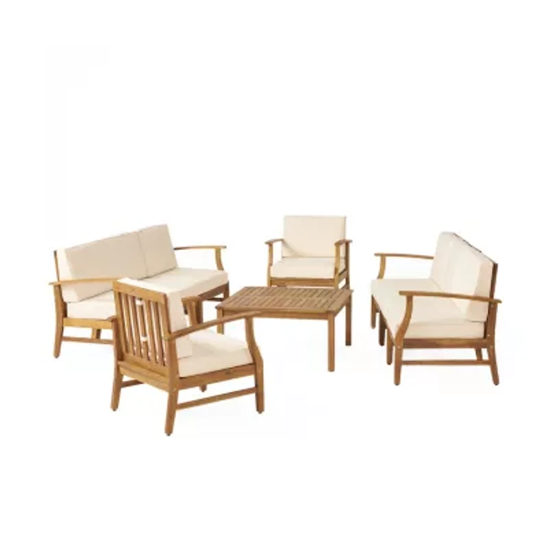 Match your excitement for your next outdoor get-together with a dazzling outdoor sectional that is as equally exciting. With a luxurious look and enough space to comfortably seat eight people, this sofa set will have you perfectly prepared for the summer. Including water-resistant cushions and frames that consist of durable acacia wood, you will be able to relax outdoors all summer in style without the worry. With this adaptable design, you can create your own unique outdoor ensemble that delivers a sophisticated look for any occasion.