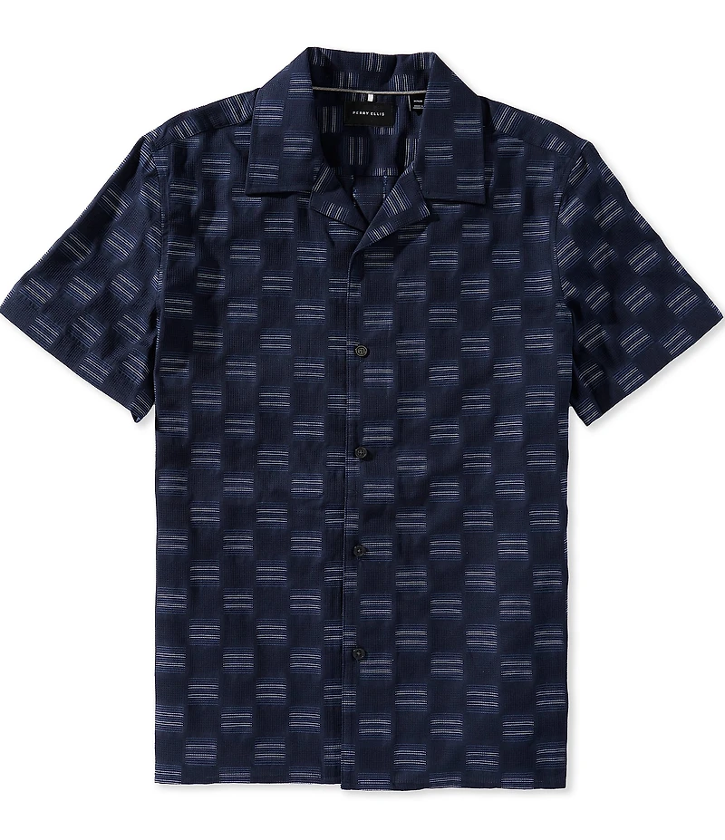Perry Ellis Clipped Dobby Short Sleeve Woven Camp Shirt