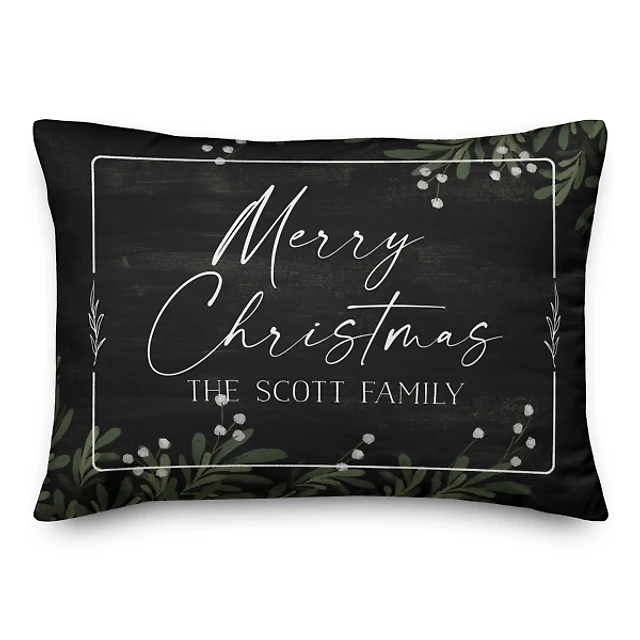 Personalized Merry Christmas Greenery Pillow
