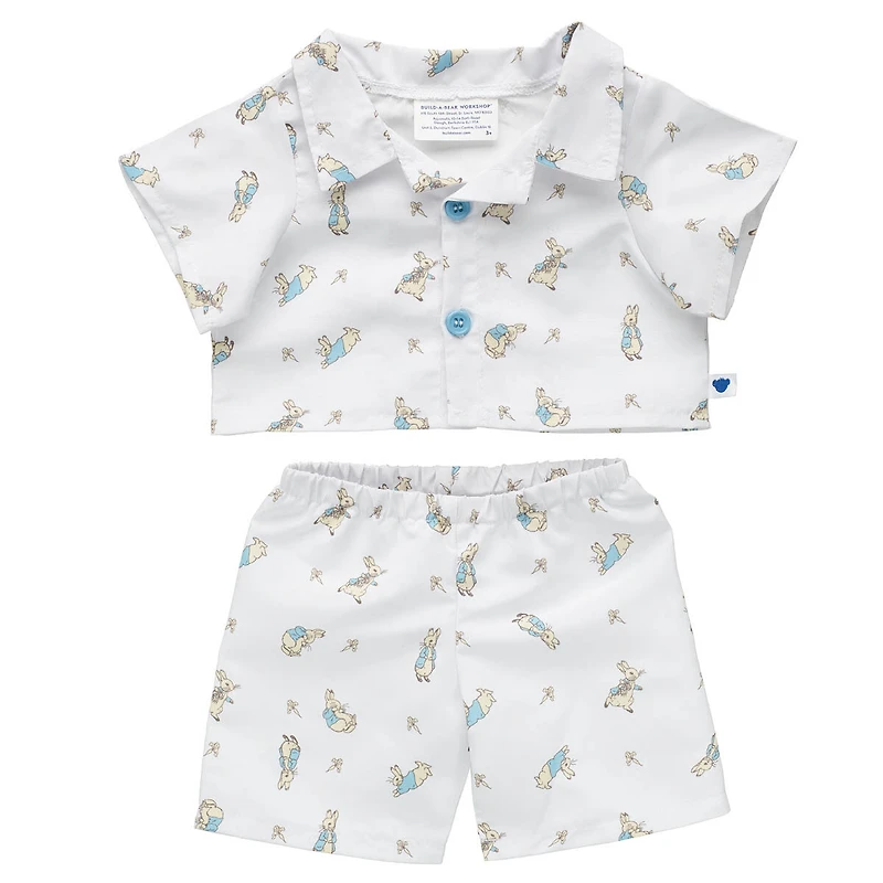 Your Peter Rabbit™ plush can drift off dreaming of carrots and wild adventures when snuggled in this cute pair of Peter Rabbit PJs. The two-piece pajama outfit features an all-over print of the beloved mischief maker.