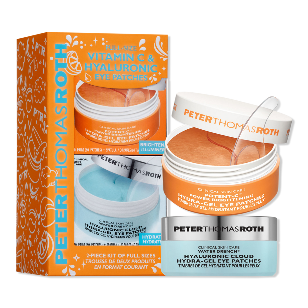 FULL SIZE HYDRAGEL DUO. Benefits: Limited edition value kit with two full-size eye patch favorites. Potent-C Power Brightening Hydra-Gel Eye Patches help brighten and reduce signs of aging with mega-potent THD Ascorbate Vitamin C. Water Drench Hyaluronic Cloud Hydra-Gel Eye Patches help reduce the look of dryness, under-eye bags and dark circles with Hyaluronic Acid, Caffeine and Arnica. Key Ingredients: THD Ascorbate Vitamin C - Potent brightener 50 times more powerful than traditional Vitamin C.. Hyaluronic Acid - Drenches skin with moisture and helps draw in water.. Caffeine and Arnica - Help to reduce the look of under-eye puffiness and darkness.. Includes: Potent-C Power Brightening Hydra-Gel Eye Patches (30 pairs). Water Drench Hyaluronic Cloud Hydra-Gel Eye Patches (30 pairs).